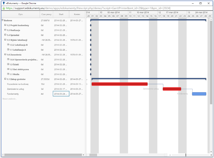 System pozwala w wygodnej i łatwej do zarządzania formie diagramu Gantta śledzić kluczowe zadania w projekcie