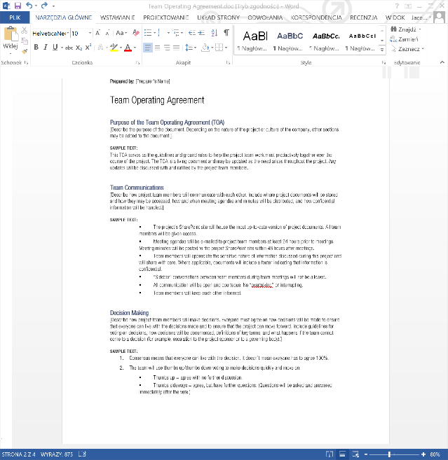 Tworzenie dokumentów z szablonów