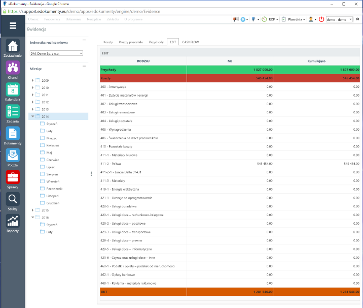 System eDokumenty pozwala na tworzenie wielowymiarowych budżetów, obejmujących różnego rodzaju koszty, w tym takie których opis powstaje